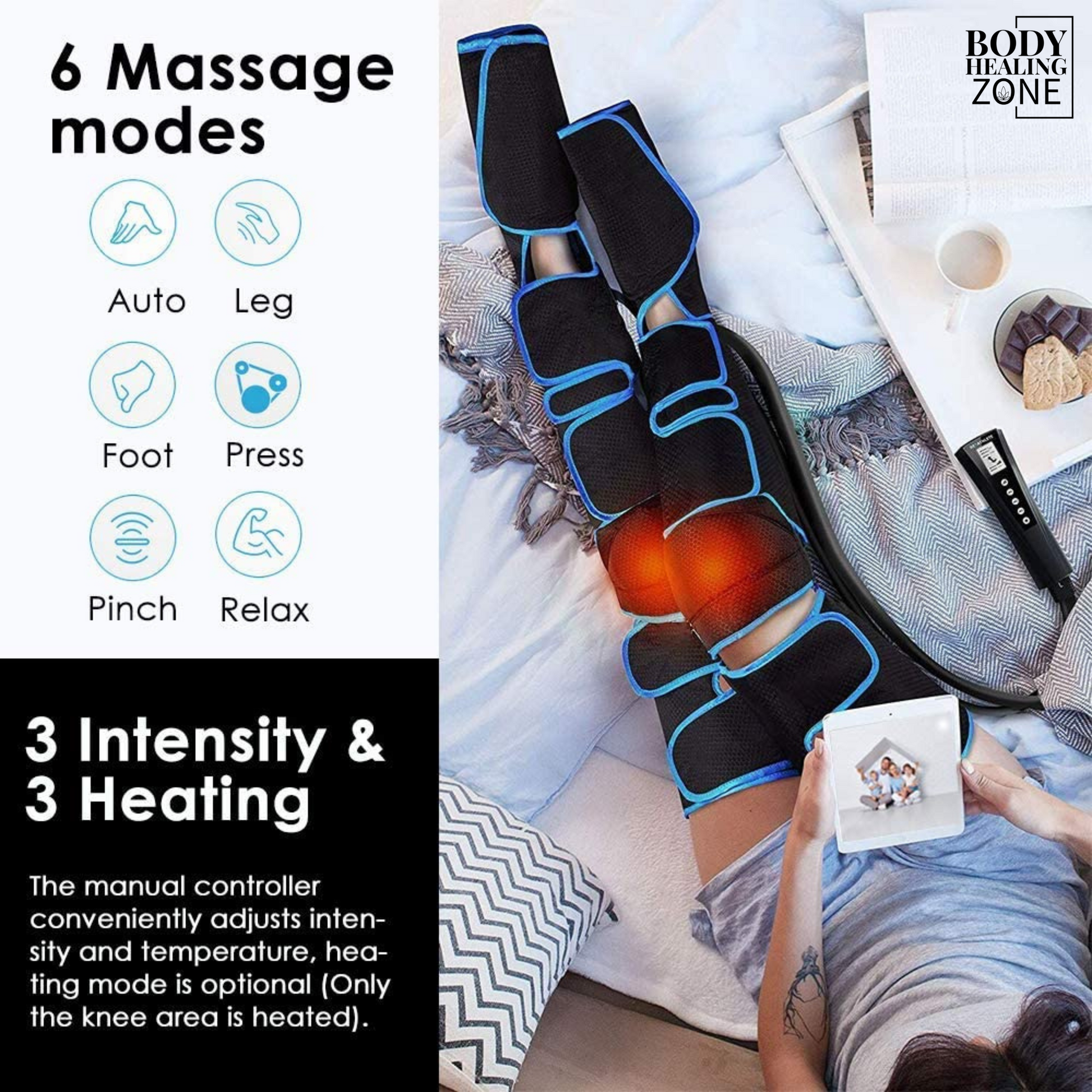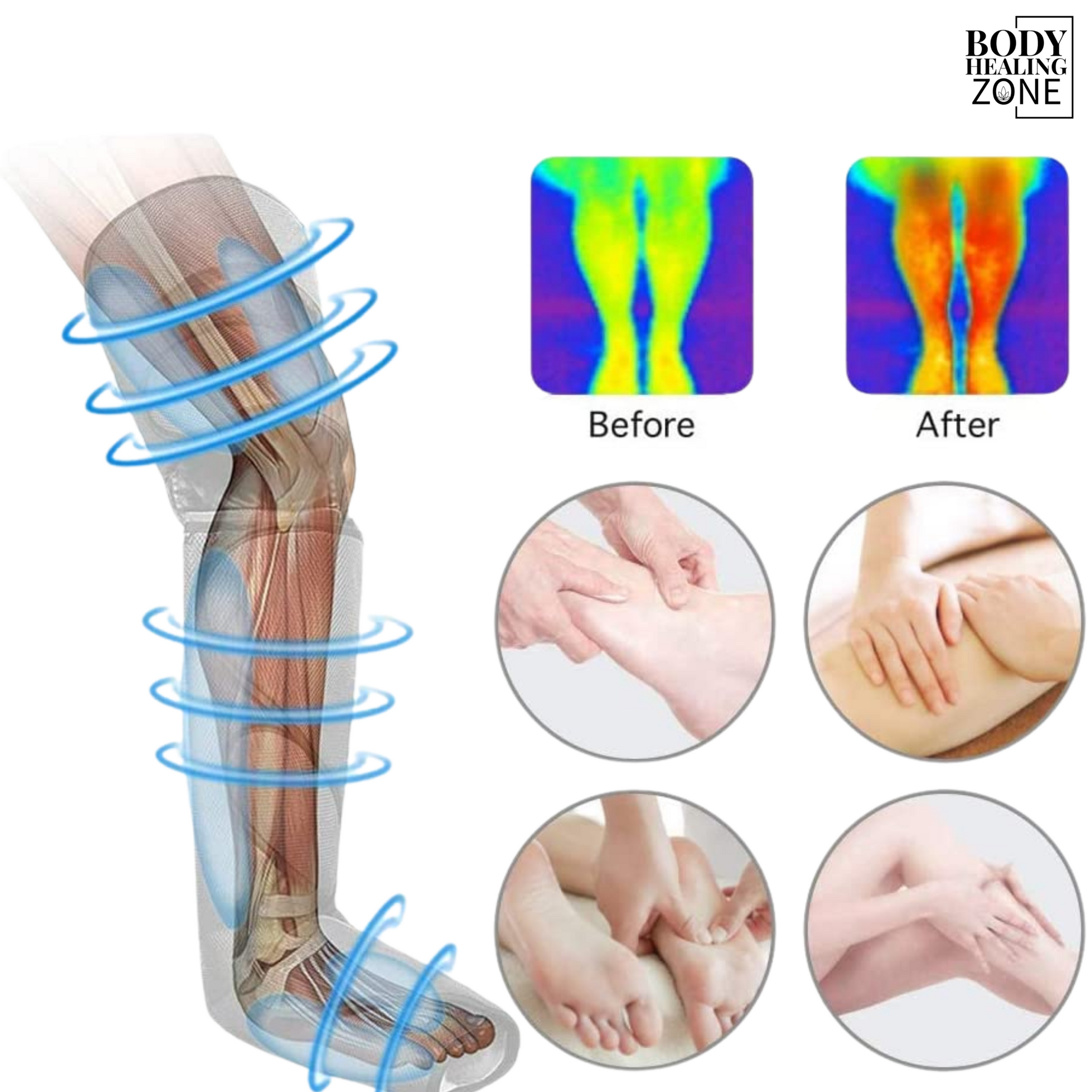 The Body Healing Zone - Air Pressure Full Leg Massager L1 is the perfect solution for anyone seeking relief from muscle pain, improved blood circulation, and enhanced lymphatic drainage. This innovative device is designed to provide a comprehensive massage experience that targets your legs, knees, and feet, ensuring you feel rejuvenated and pain-free.